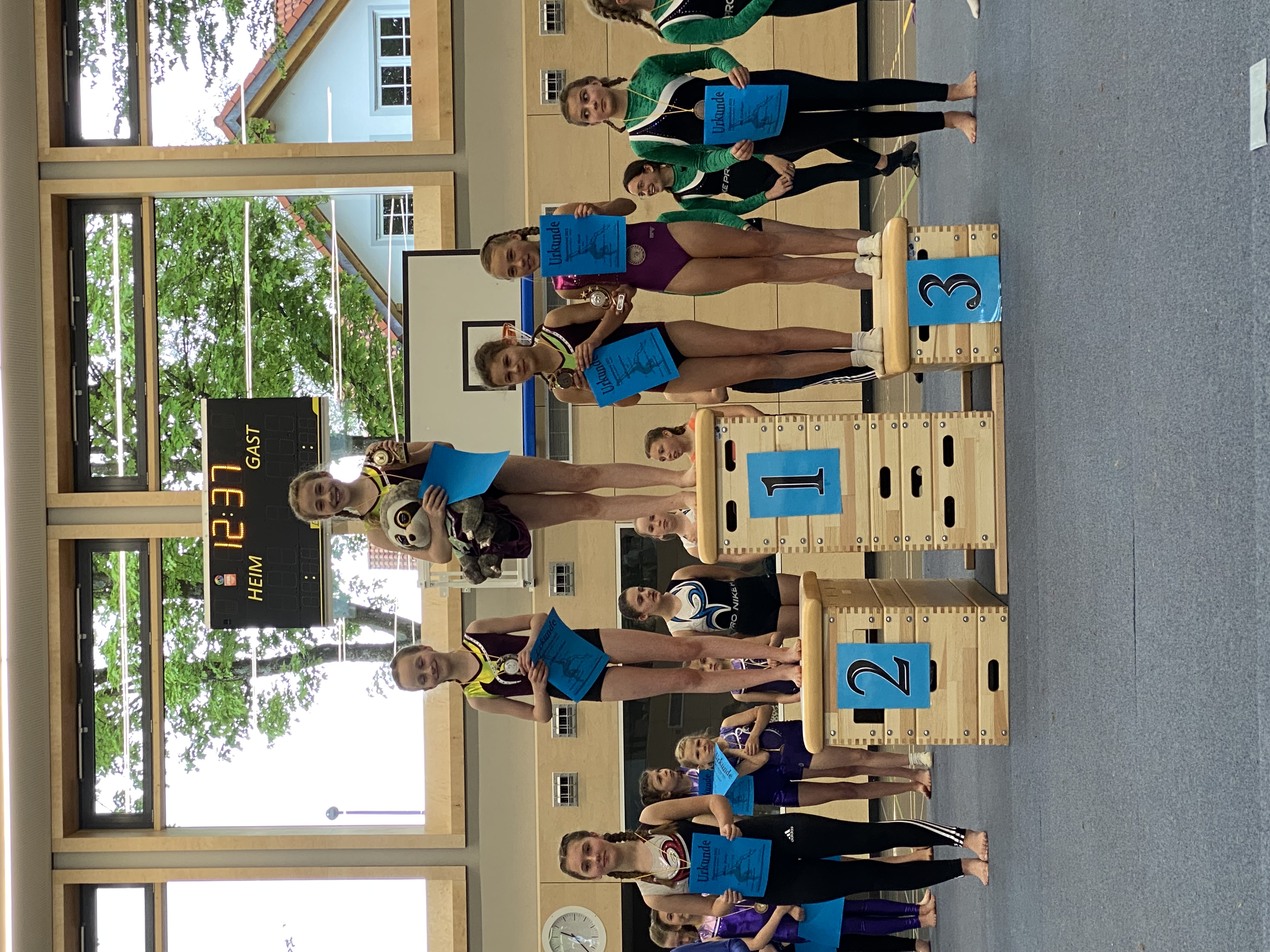 Leni Rupsys verpasste in der Altersklasse "Jahrgang 2010" nur knapp das Trepperl und erzielte mit 57,25 Punkten den vierten Platz. In ihrem Jahrgang gingen 26 Starterinnen an die Geräte, sodass auch Annelie Werner und Sophia Pfeifer stolz sein können, zu den Top 12 zu gehören. Auch in den Jahrgängen 2012 und 2013 war der TuS stark vertreten. Doch leider verpassten Anni Zeidelhack, Laura Kokoschka, Lolla Susser, Lis Zeidelhack, Phoebe Maki, Josefa Rest und Ava Fiebe das Podest. Die Trainerinnen und Trainer der Wettkampfgruppe sind dennoch sehr zufrieden mit allen Leistungen und freuen sich mit den Turnerinnen über die tollen Platzierungen. Ein rundum gelungener Wettkampf!