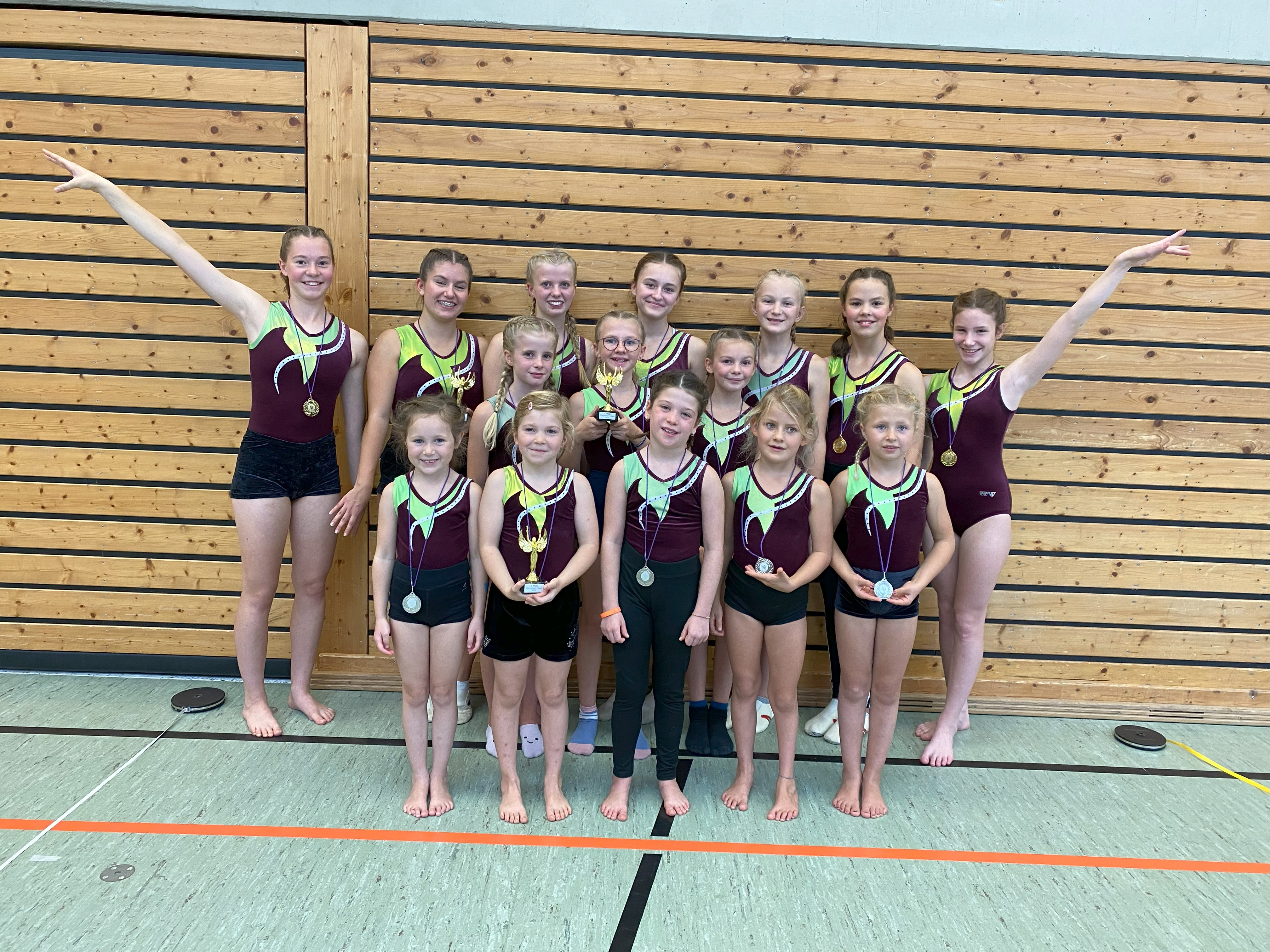 Die zweite Mannschaft der Perspektivgruppe in der Altersklasse Jahrgang 2014 sicherte sich mit 221,55 Punkten den ersten Platz. Mit ihren durchweg guten Leistungen setzten sich Emma Bachfischer (2014), Maya Taube (2014), Johanna Holz (2014), Sina Reichel (2014), Paulina Meier-Wahl (2014), und Emily Nardiello (2014) mit über 10 Punkten Abstand von der Konkurrenz ab. Ihre Trainerinnen sind sehr stolz auf die Leistungen und freuen sich über die tollen Platzierungen!
