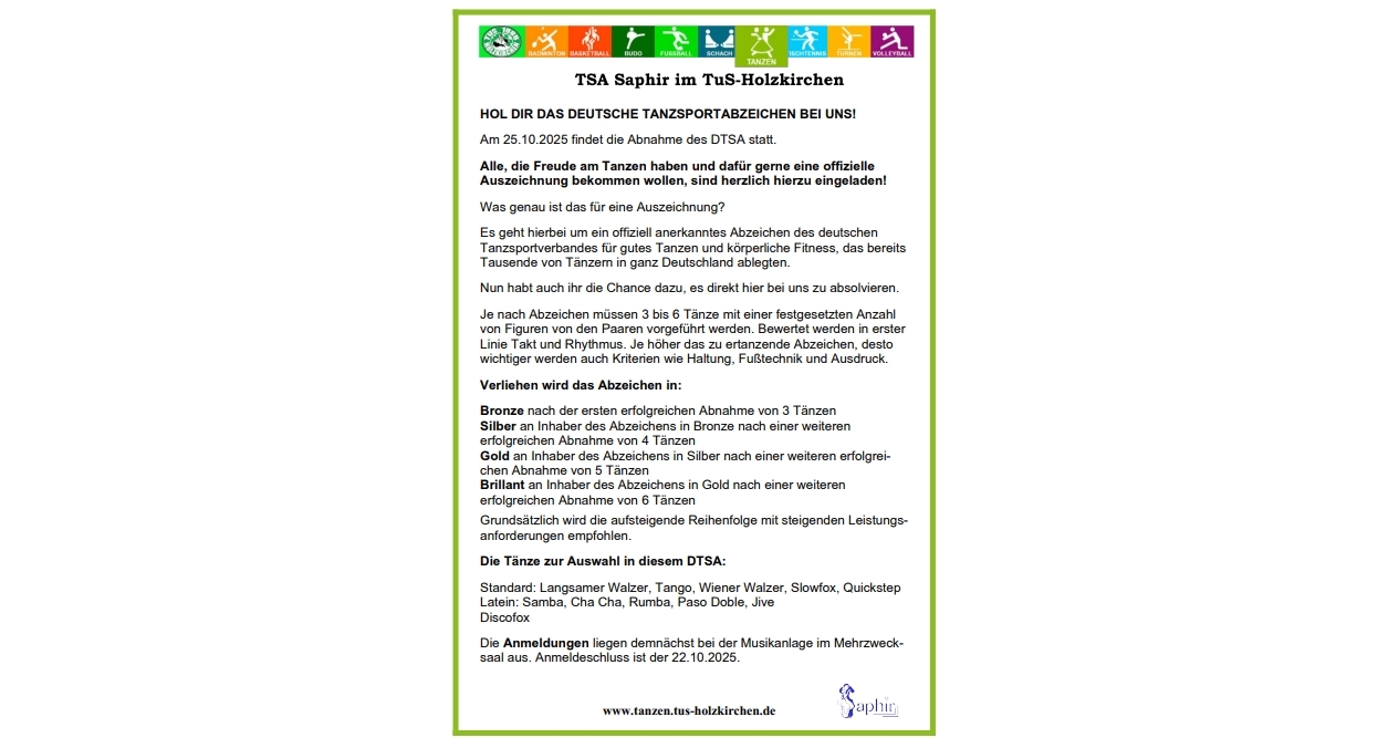 Es geht hierbei um ein offiziell anerkanntes Abzeichen des deutschen Tanzsportverbandes für gutes Tanzen und körperliche Fitness, das bereits tausende von Tänzern in ganz Deutschland ablegten.